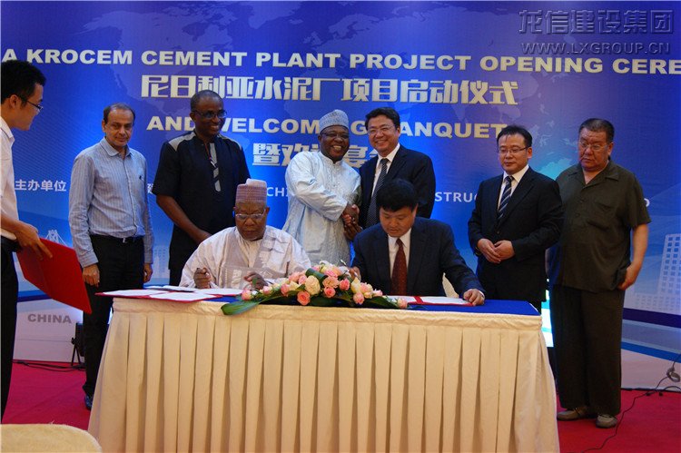 2015年6月15日晚上八點,尼日利亞KROCEM水泥廠項目啟動儀式暨歡迎宴會在光華國際大酒店舉行。海門市常務副市長成偉、南通市商務局黨組成員、中國國際貿易促進委員會南通分會副會長楊平、南通市商務局外經處處長宋輝、尼日利亞KROCEM有限公司代表團、龍信集團董事長陳祖新、總經理唐愛東、海外公司總經理徐巍松及龍信集團各部門主要領導、江蘇海建股份有限公司領導、中國銀團(中信保、國開行、工商銀行、江蘇銀行)代表等出席了啟動儀式及歡迎宴會。