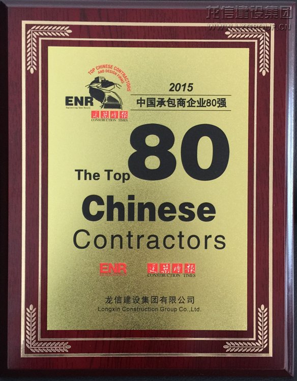 11月19日, 由美國《工程新聞記錄》(ENR)和中國《建筑時報》共同主辦的2015年“中國承包商80強”榜單在南京發布,龍信建設集團有限公司第7次入選該榜單,此次名列第32位。